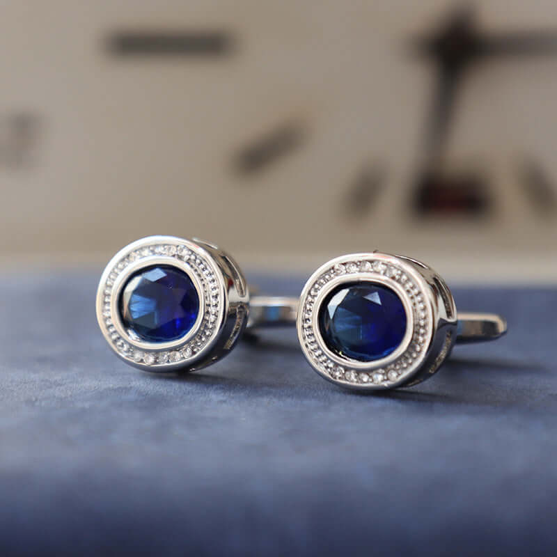 Copper Blue Rhinestones Silver Plated Cufflinks